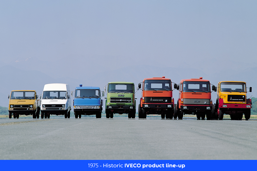 In 1975 five truck and specialty vehicle manufacturers merged to form the Industrial Vehicles Corporation: IVECO, which today is among the leading global players in road transportation.